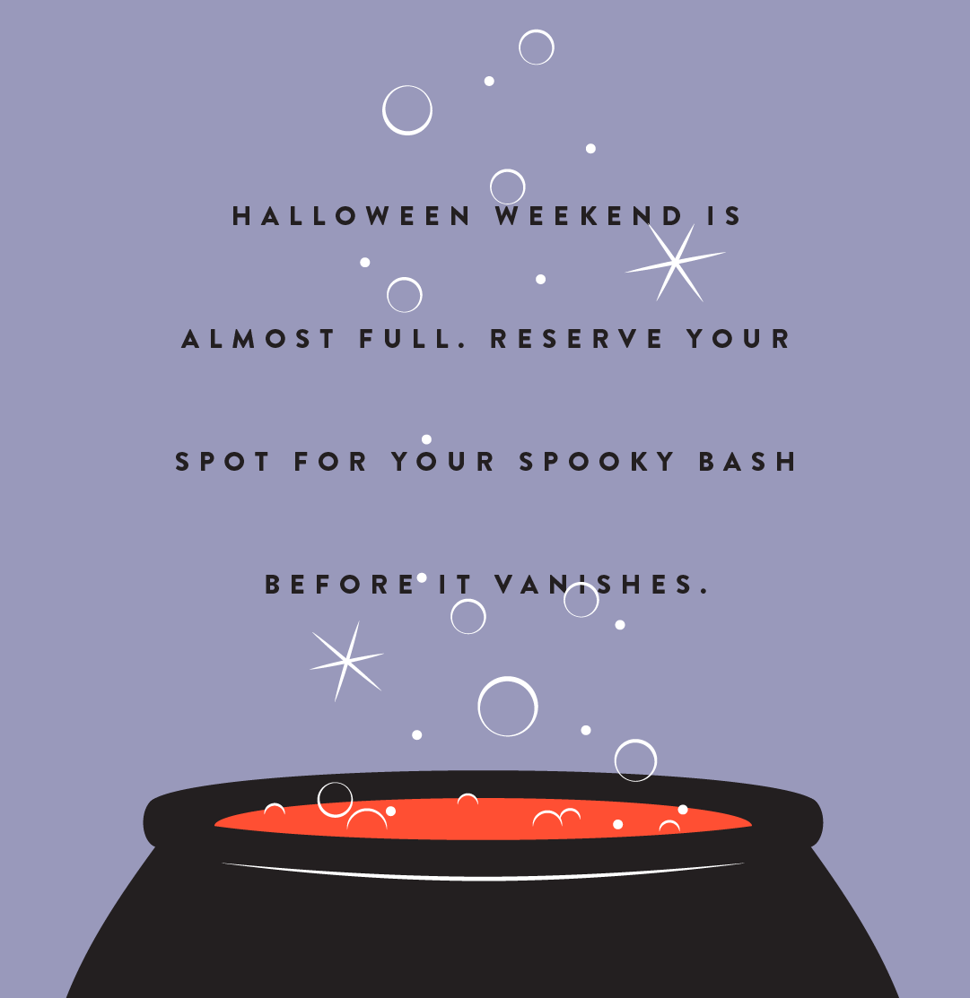 We have limited availability leading up to Halloween, but we still have a few openings for October weekends. And even if your date isn’t listed, let us know all the details and we may be able to work some magic!
